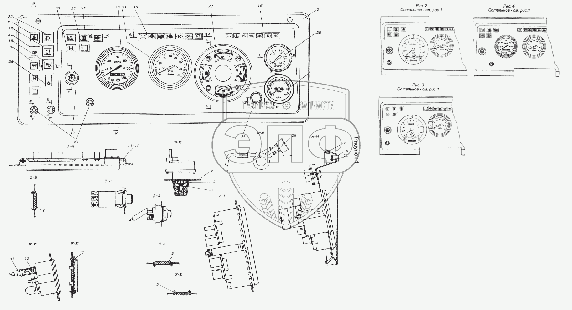 Каталог запасных частей к технике: Камский автозавод 5460. Щиток приборов