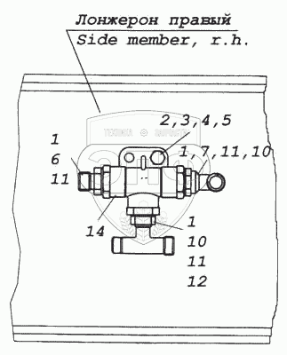 Каталог запасных частей к технике: Камский автозавод 5460. Установка двухмагистрального клапана