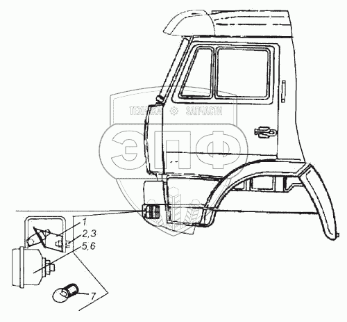 Каталог запасных частей к технике: Камский автозавод 5460. Установка фар дополнительных и противотуманных