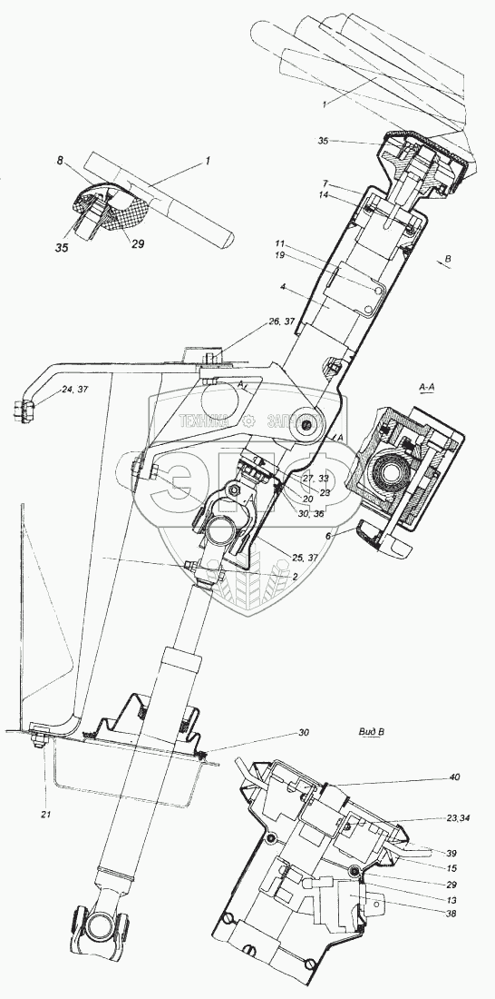 Каталог запасных частей к технике: Камский автозавод 5460. Установка колонки рулевого управления
