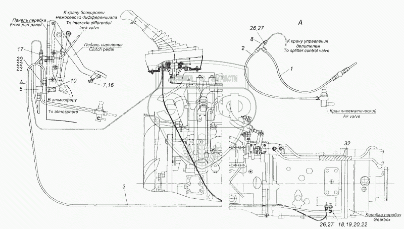 Каталог запасных частей к технике: Камский автозавод 5460. Установка пневмопривода управлением переключения передач