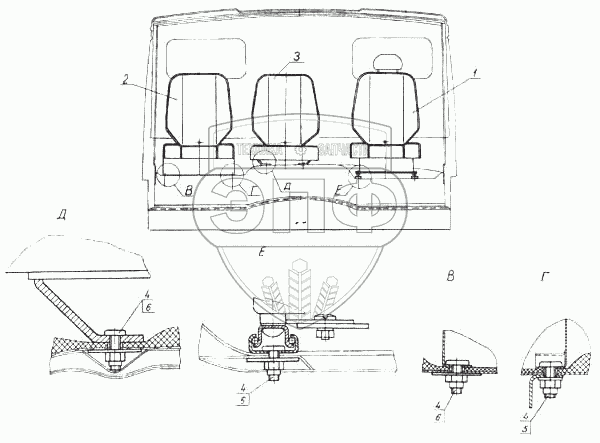 Каталог запасных частей к технике: Камский автозавод 5460. Установка сидений