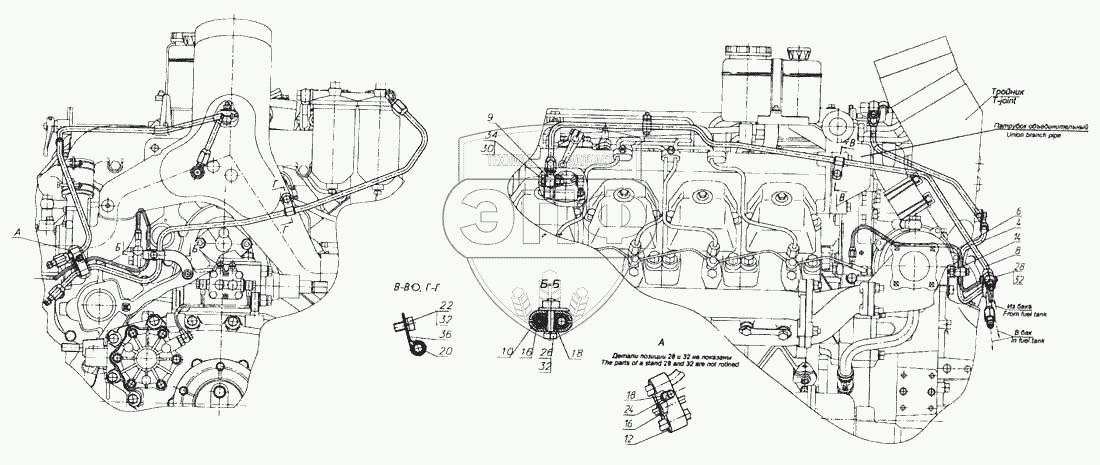 Каталог запасных частей к технике: Камский автозавод 5460. Установка топливопроводов