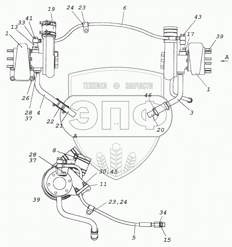Каталог запасных частей к технике: Камский автозавод 5460. Установка турбокомпрессора