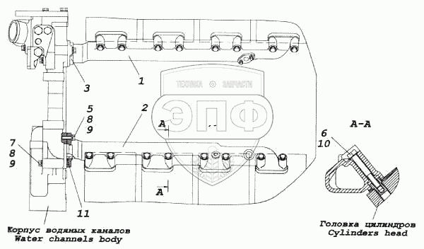 Каталог запасных частей к технике: Камский автозавод 5460. Установка водяных труб