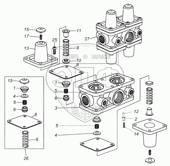 Каталог запасных частей к технике: Камский автозавод 5460. Клапан защитный четырехконтурный