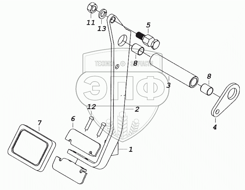 Каталог запасных частей к технике: Камский автозавод 5460. Педаль сцепления