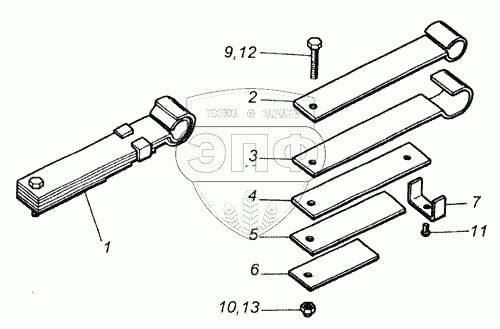 Каталог запасных частей к технике: Камский автозавод 5460. Рессора кабины