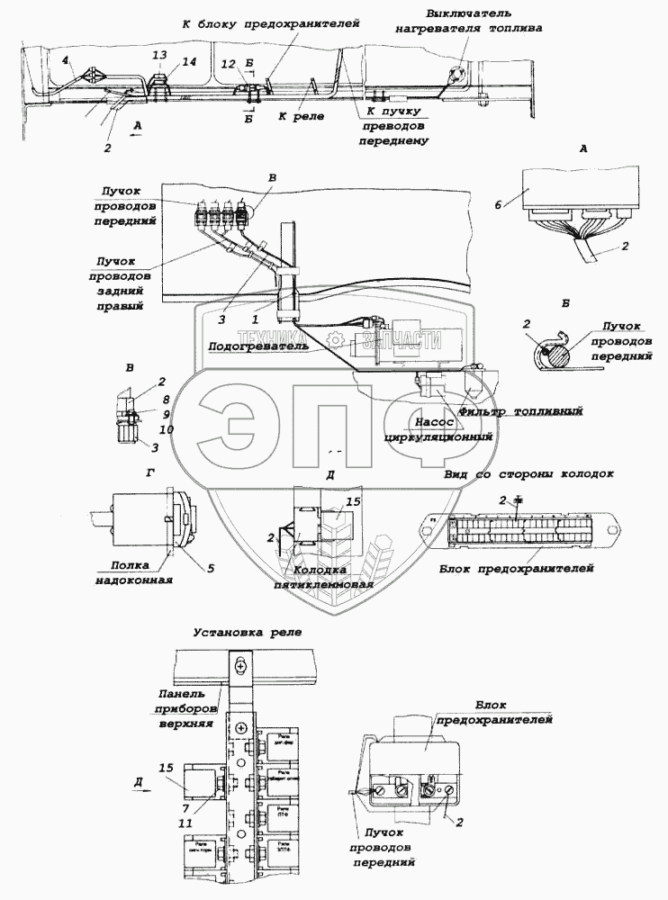 Каталог запасных частей к технике: Камский автозавод 5460. Установка электрооборудования подогревателя