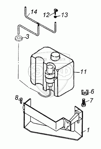 Каталог запасных частей к технике: Камский автозавод 5460. Установка омывателя электрического