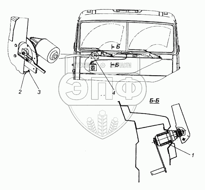 Каталог запасных частей к технике: Камский автозавод 5460. Установка стеклоочистителя
