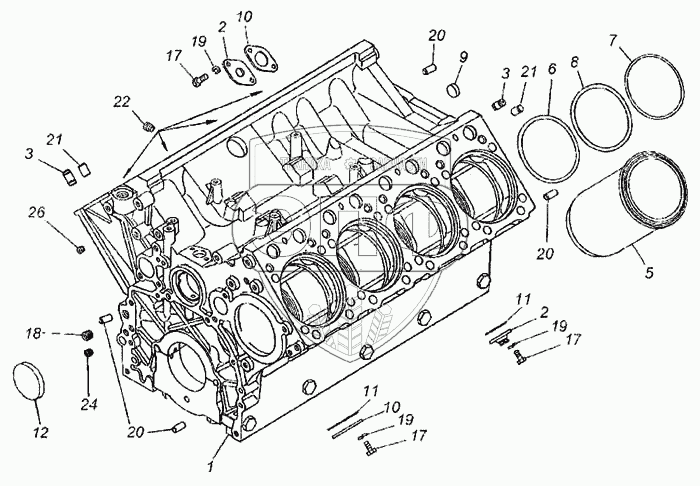Каталог запасных частей к технике: Камский автозавод 6460. Блок цилиндров в сборе