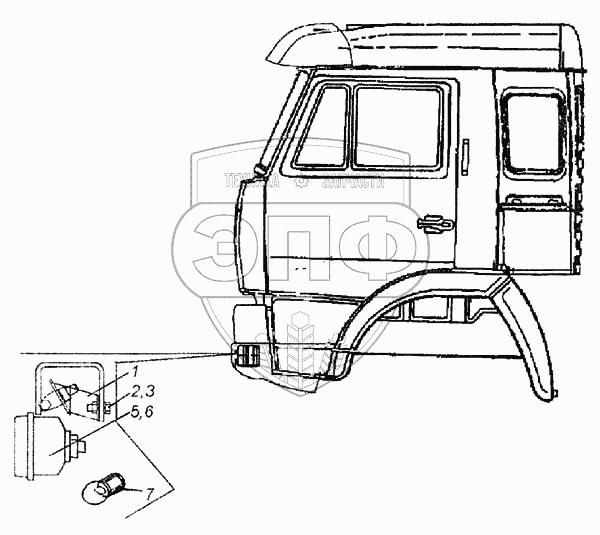 Каталог запасных частей к технике: Камский автозавод 6460. Установка фар дополнительных и противотуманных