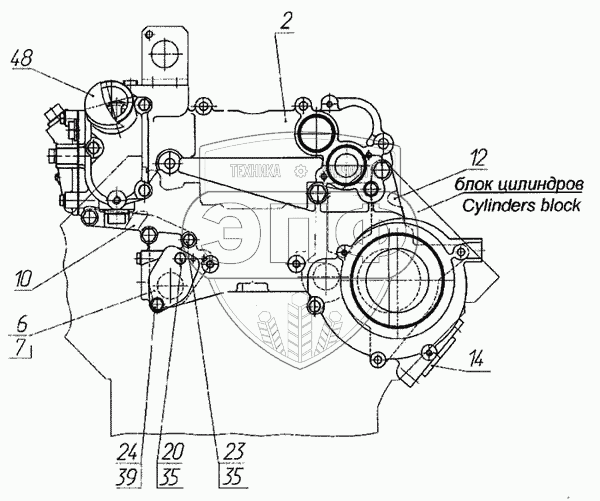Каталог запасных частей к технике: Камский автозавод 6460. Установка корпуса водяных каналов