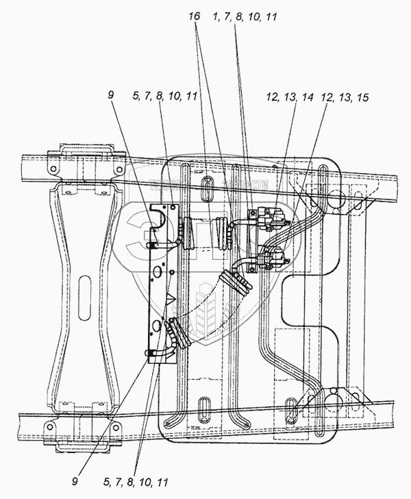 Каталог запасных частей к технике: Камский автозавод 6460. Установка пневмовыводов к полуприцепу