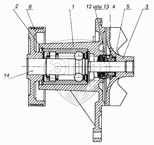 Каталог запасных частей к технике: Камский автозавод 6460. Водяной насос