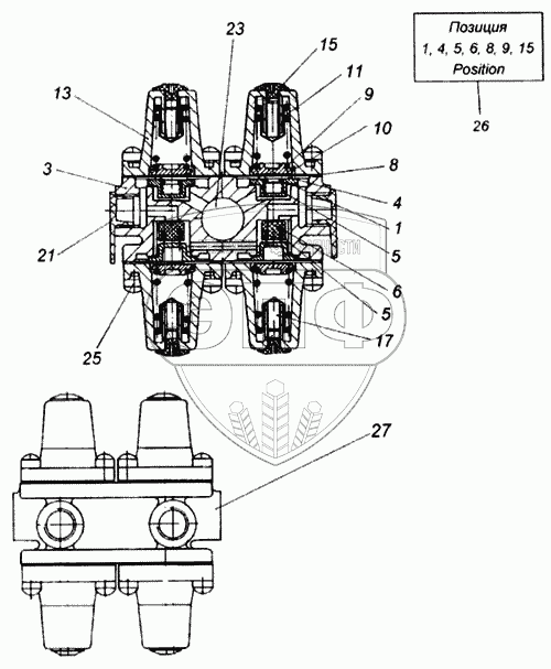 | 27 | 53205-3515400 | Клапан защитный четырехконтурный | Нет на складе |