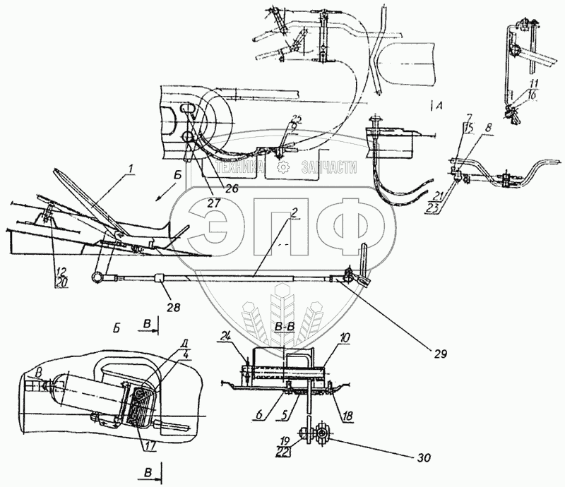 Каталог запасных частей к технике: Камский автозавод 65115. Привод акселератора
