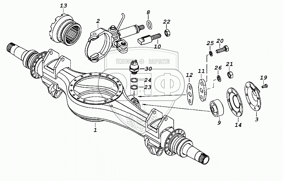 Каталог запасных частей к технике: Камский автозавод 65116. Картер среднего моста