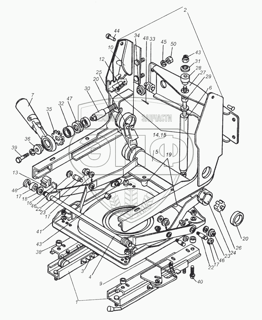 Каталог запасных частей к технике: Камский автозавод 65116. Механизм подрессоривания сиденья водителя