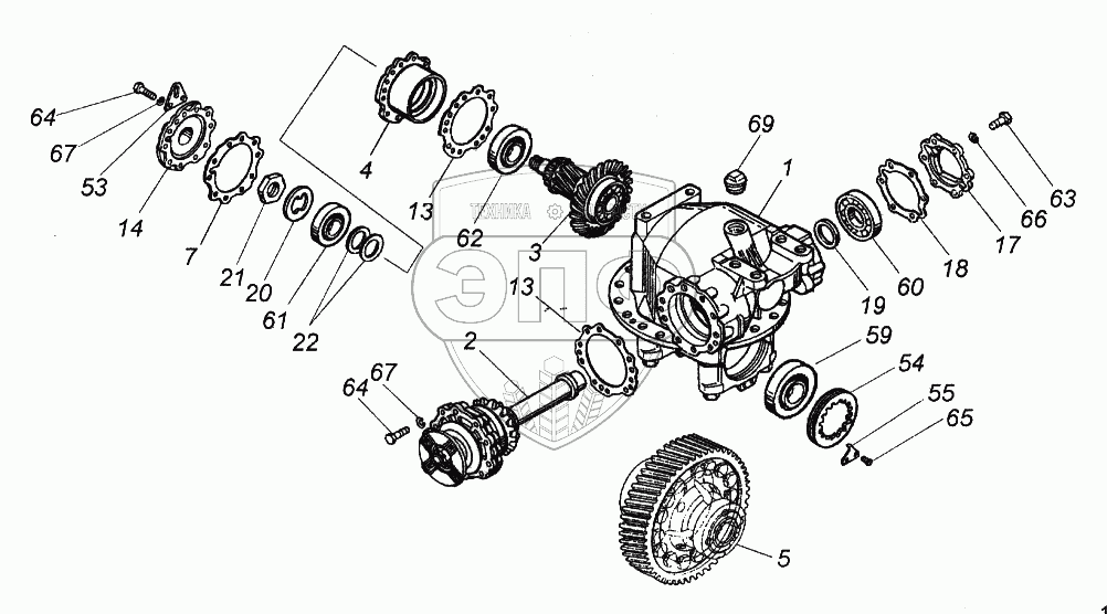 Каталог запасных частей к технике: Камский автозавод 65116. Передача главная заднего моста