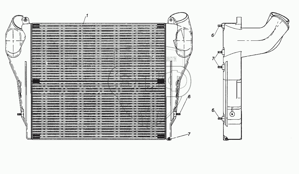 Каталог запасных частей к технике: Камский автозавод 65116. Теплообменник охлаждения наддувочного воздуха