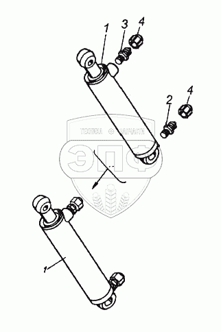 Каталог запасных частей к технике: Камский автозавод 65116. Цилиндр механизма опрокидывания кабины