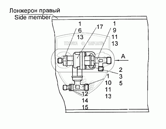 Каталог запасных частей к технике: Камский автозавод 65116. Установка двухмагистрального клапана