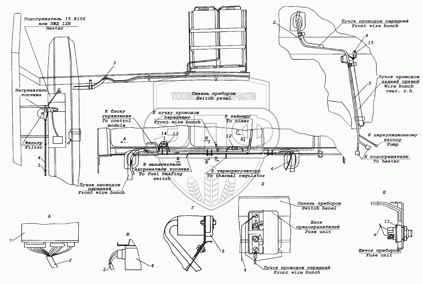 | 2 | 53215-3741010 | Пучок проводов подогревателя кабины | Нет на складе | |