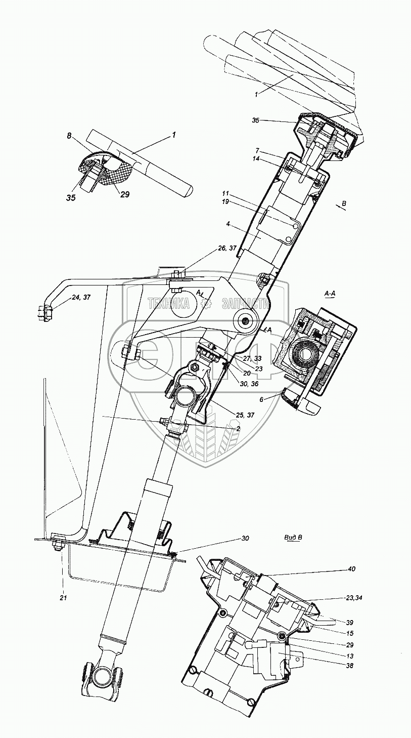 Каталог запасных частей к технике: Камский автозавод 65116. Установка колонки рулевого управления