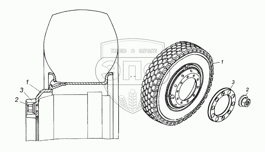 Каталог запасных частей к технике: Камский автозавод 65116. Установка передних дисковых колес
