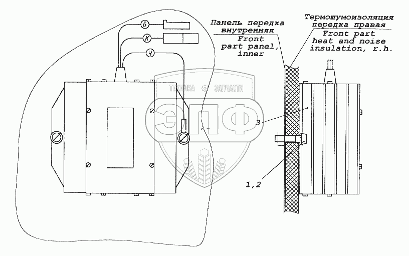 Каталог запасных частей к технике: Камский автозавод 65116. Установка преобразователя напряжения