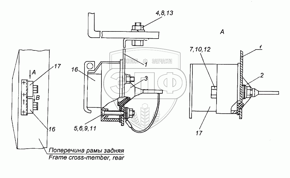 Каталог запасных частей к технике: Камский автозавод 65116. Установка розеток прицепа