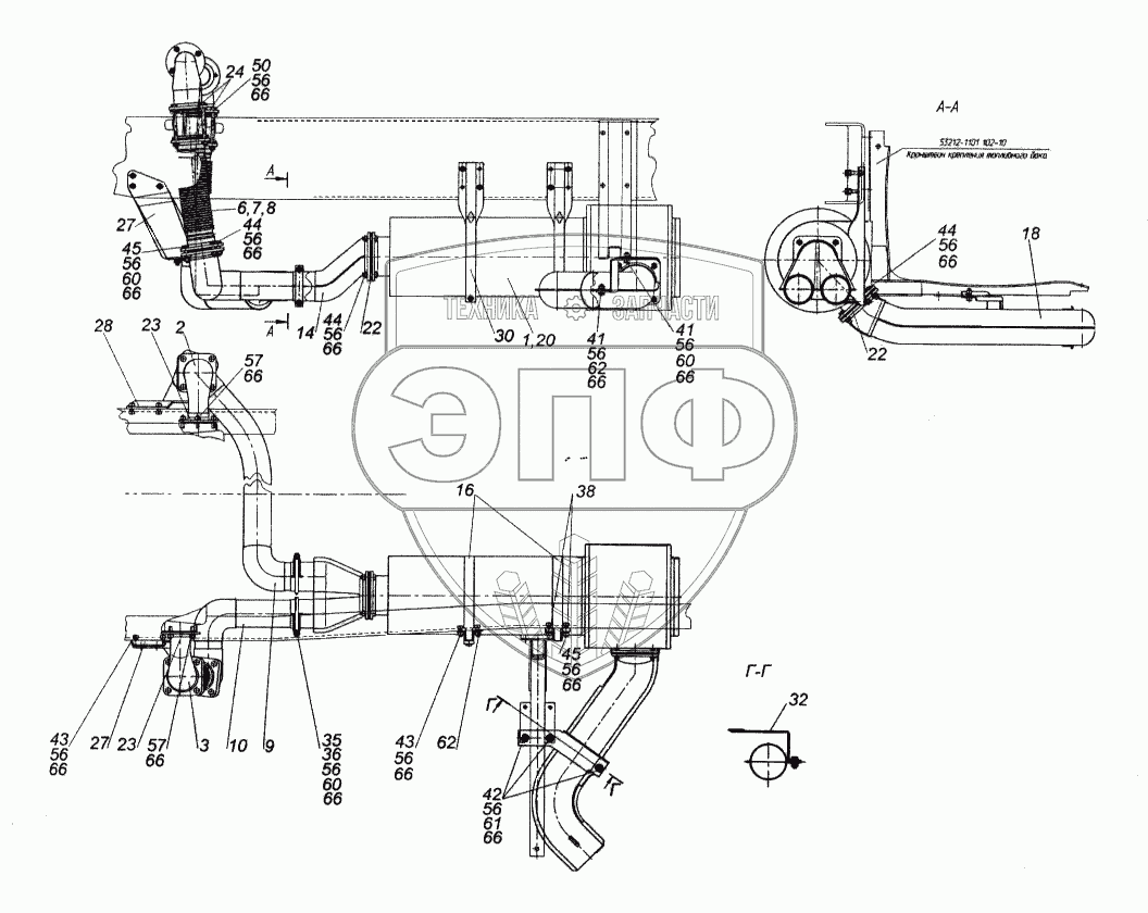 Каталог запасных частей к технике: Камский автозавод 65116. Установка системы выпуска