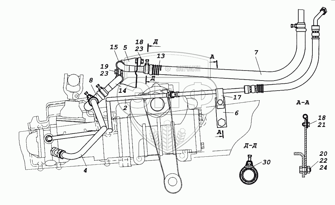 Каталог запасных частей к технике: Камский автозавод 65116. Установка трубопроводов