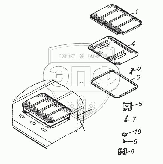 Каталог запасных частей к технике: Камский автозавод 65116. Установка вентиляционного люка крыши