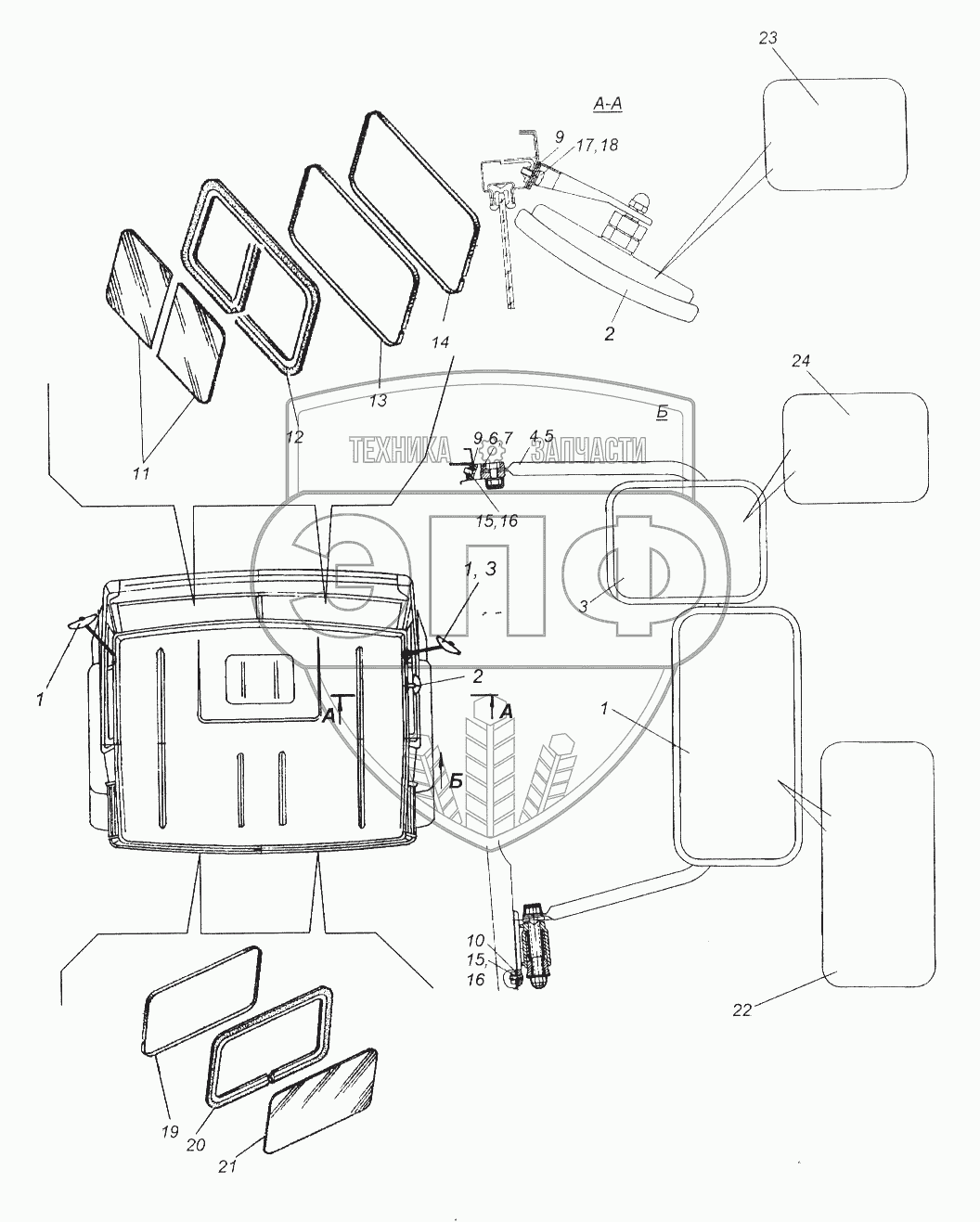 Каталог запасных частей к технике: Камский автозавод 65116. Установка зеркал заднего вида