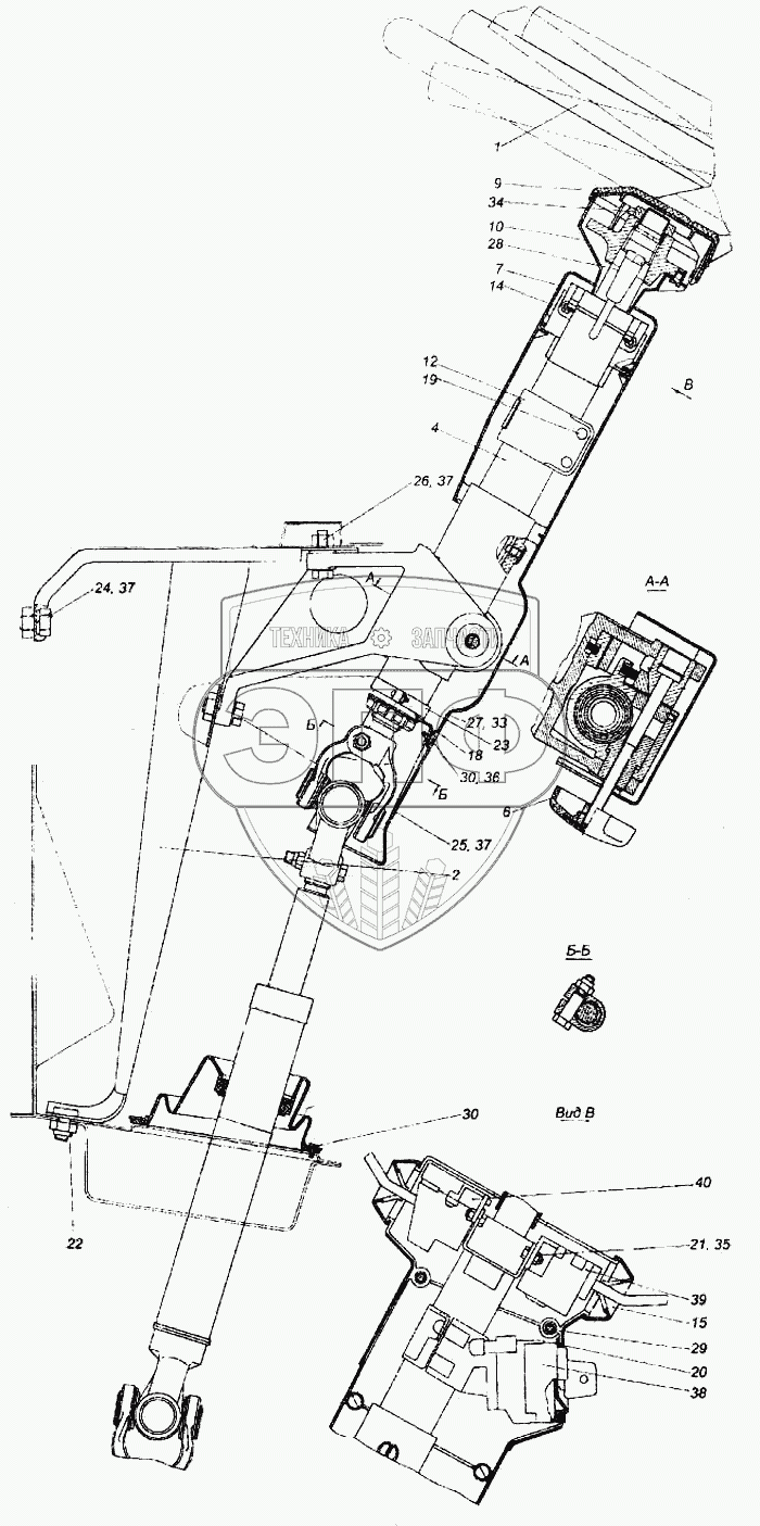 Каталог запасных частей к технике: Камский автозавод 6520. Колонка рулевого управления