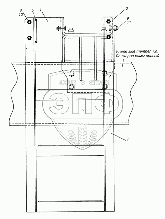 Каталог запасных частей к технике: Камский автозавод 65226. 65226-8405100 Установка лестницы
