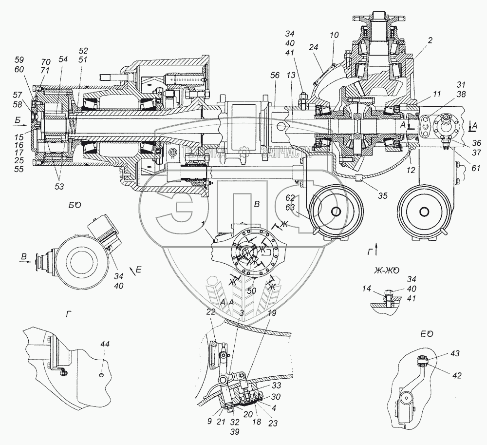 Каталог запасных частей к технике: Камский автозавод 65226. 6522-2400321-10 Мост задний