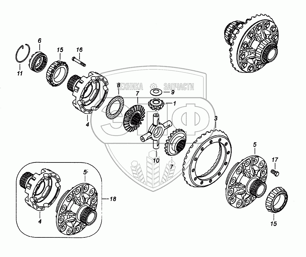 Каталог запасных частей к технике: Камский автозавод 65226. Дифференциал моста заднего