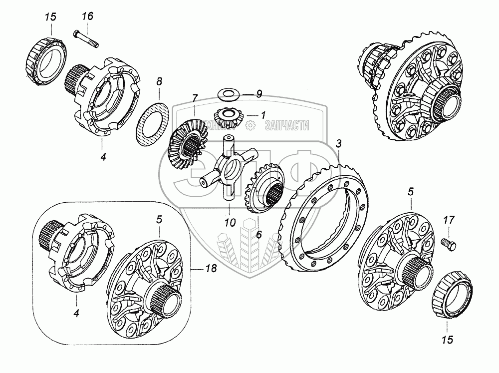 Каталог запасных частей к технике: Камский автозавод 65226. Дифференциал переднего моста
