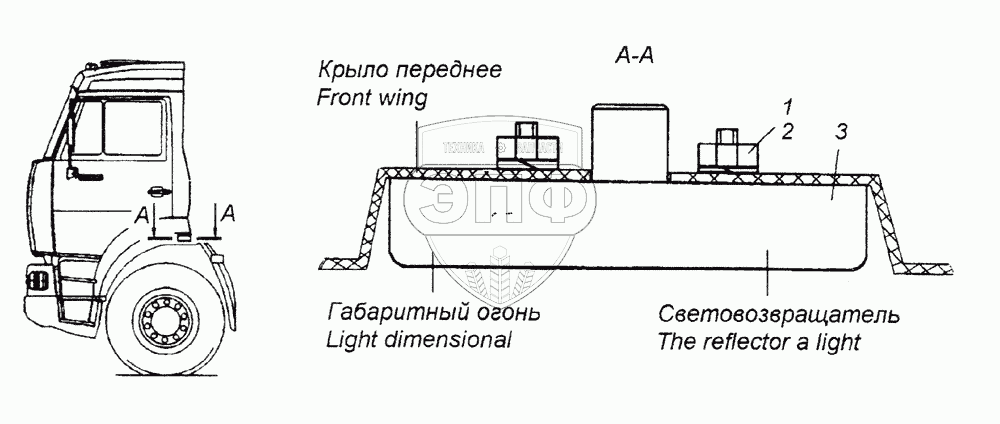 Каталог запасных частей к технике: Камский автозавод 65226. Установка боковых габаритных фонарей
