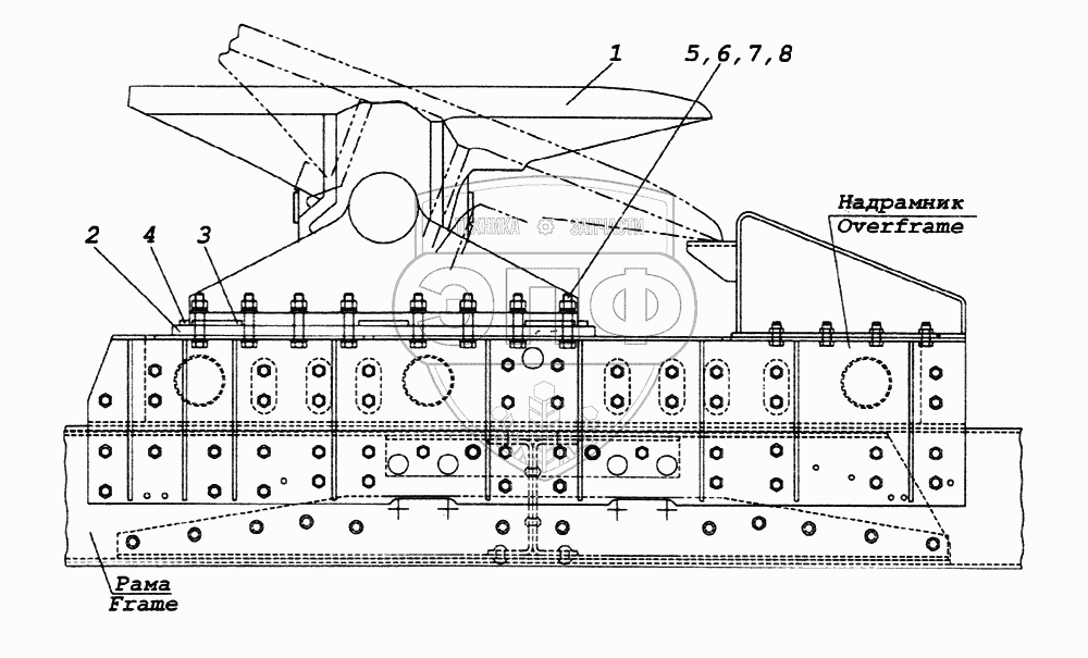 Каталог запасных частей к технике: Камский автозавод 65226. Установка седельно-сцепного устройства