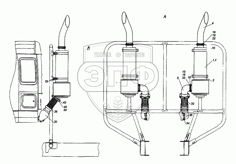 Каталог запасных частей к технике: Камский автозавод 65226. Установка системы выпуска