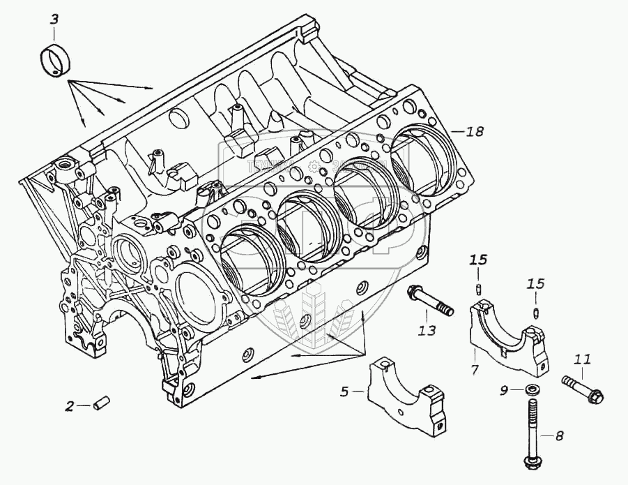 Каталог запасных частей к технике: Камский автозавод 6522. Блок цилиндров в сборе