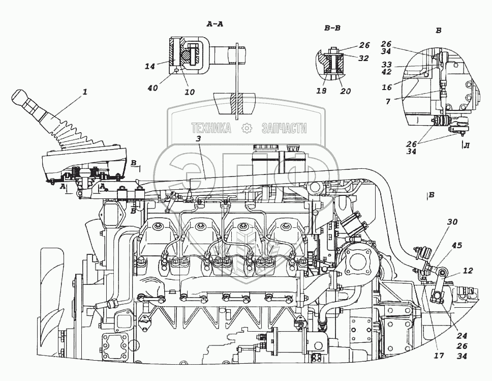 Каталог запасных частей к технике: Камский автозавод 6522. Привод управления механизмом переключения передач