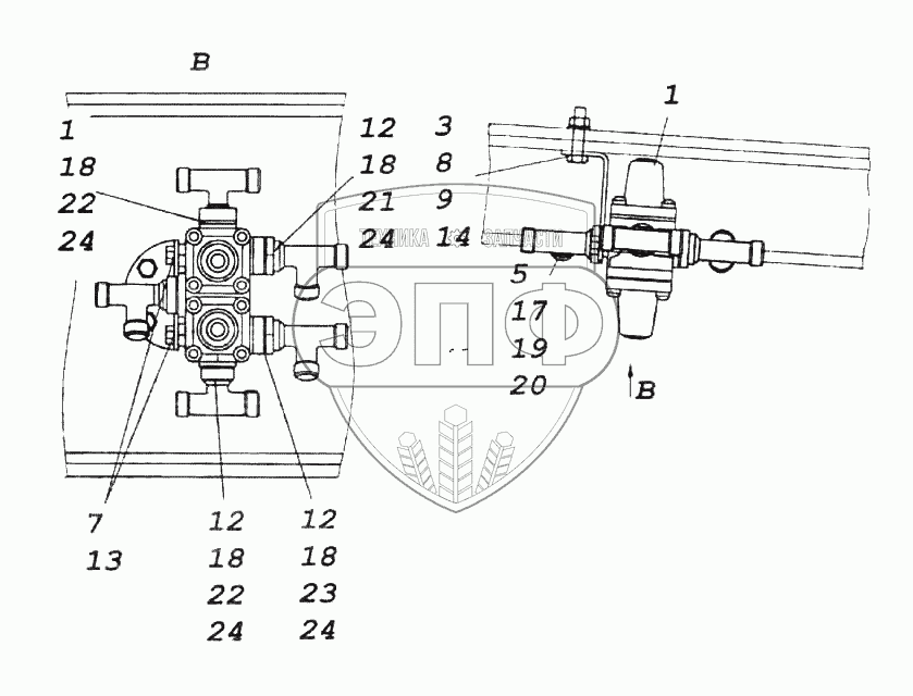 Каталог запасных частей к технике: Камский автозавод 6522. Установка четырехконтурного защитного клапана