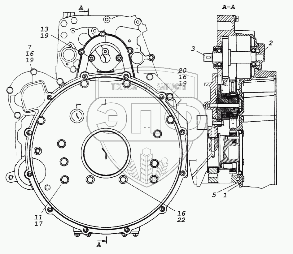 Каталог запасных частей к технике: Камский автозавод 6522. Установка картера маховика