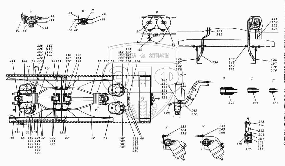 Каталог запасных частей к технике: Камский автозавод 6522. Установка пневмотормозов